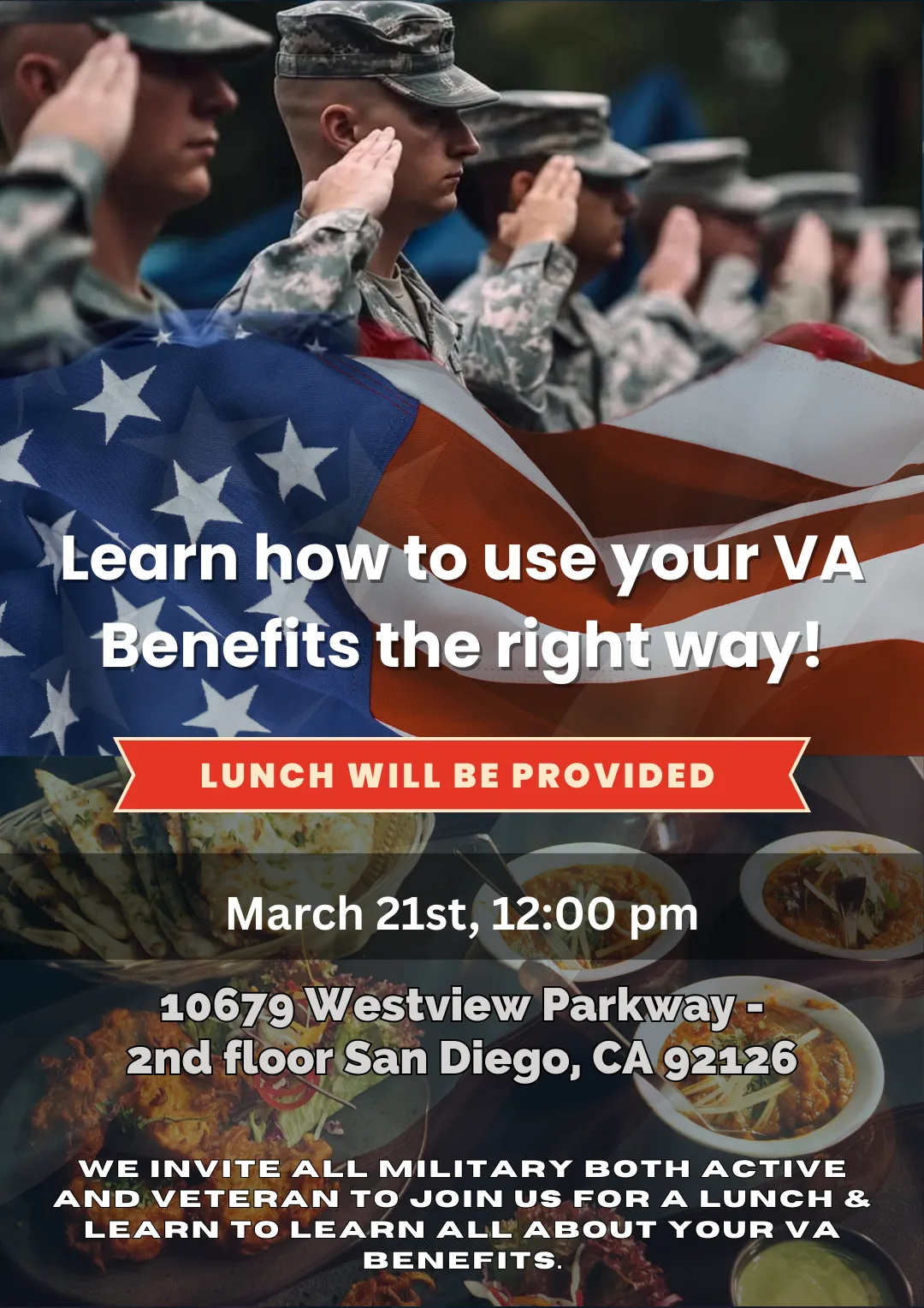 We invite all Military both Active and Veteran to join us for a Lunch & Learn to learn all about your VA Benefits.